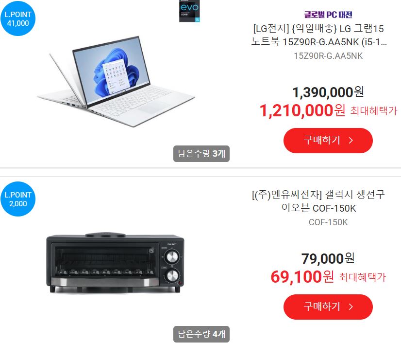 할인 품목 : 노트북, 세탁기, 테블릿 등