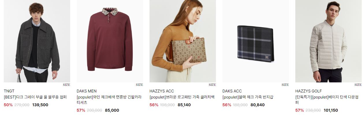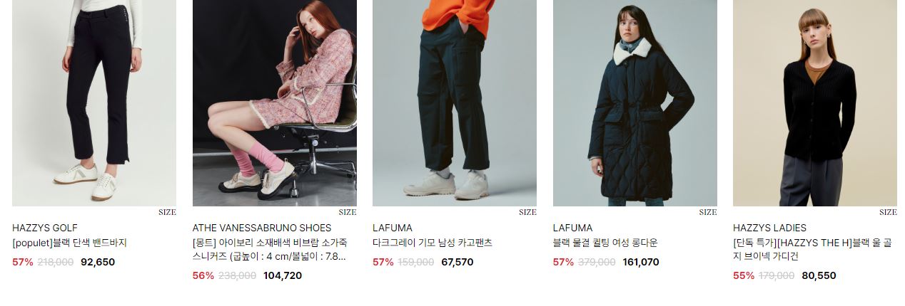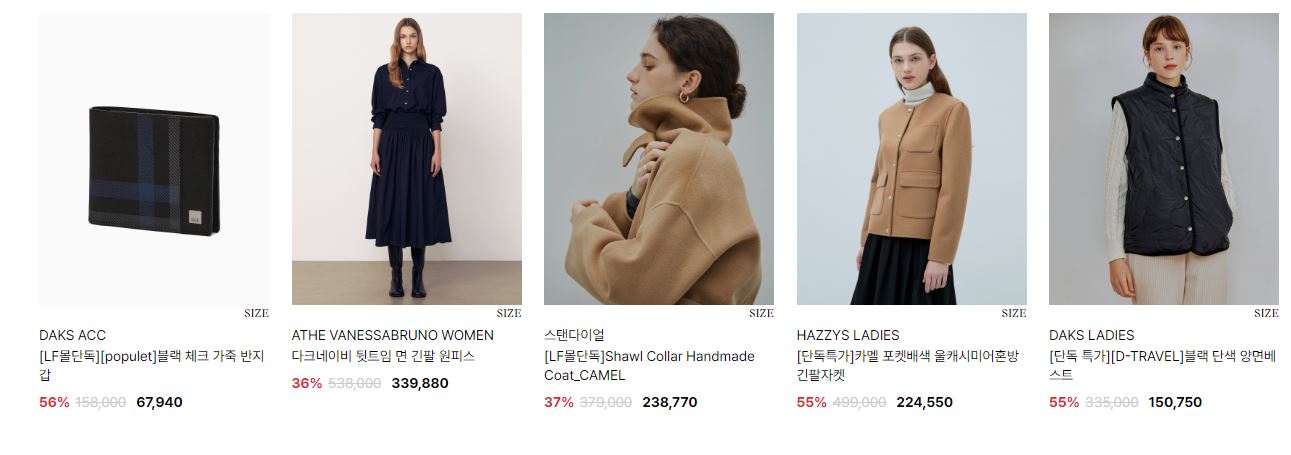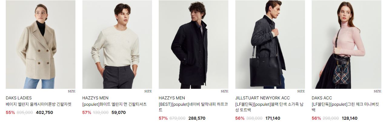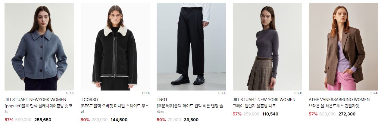 할인 품목 : 코트, 점퍼, 셔츠 등