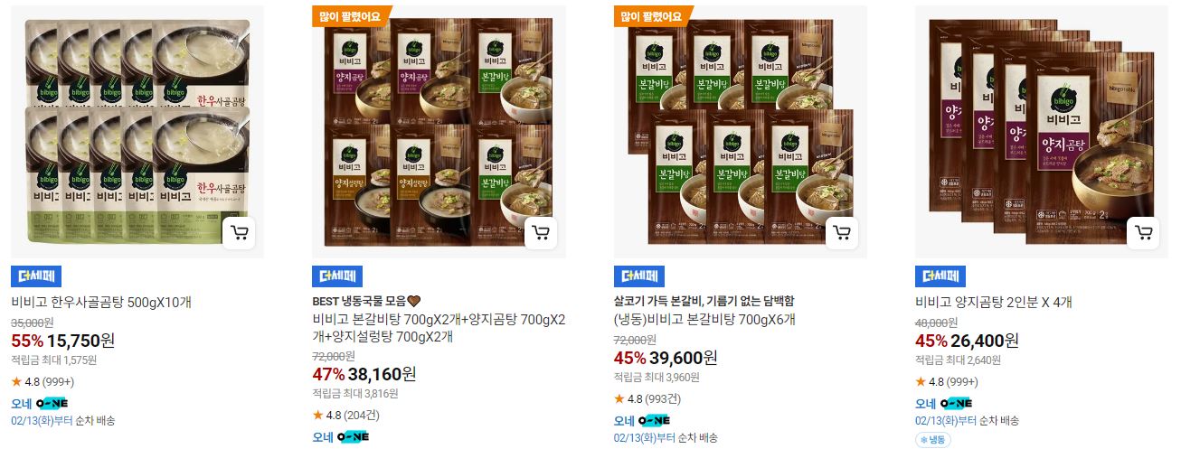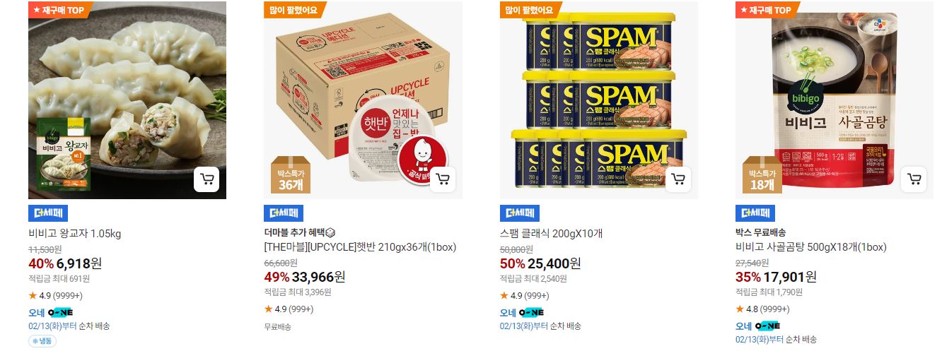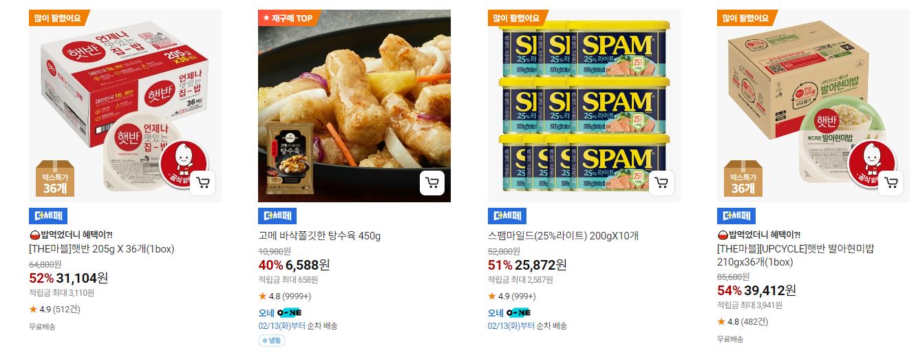 할인 품목 : 만두, 스팸, 햇반, 사골곰탕 등