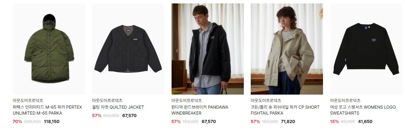 아웃도어프로덕츠 다양한 제품을 할인 판매하네요.
