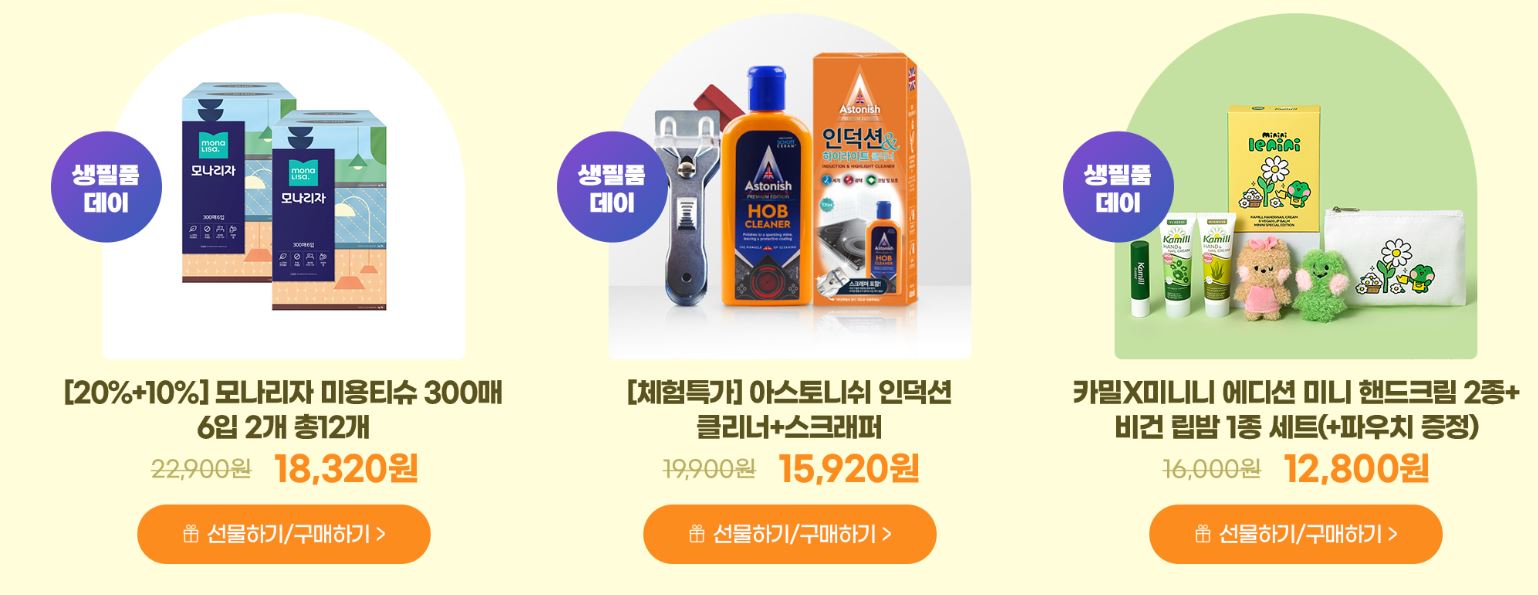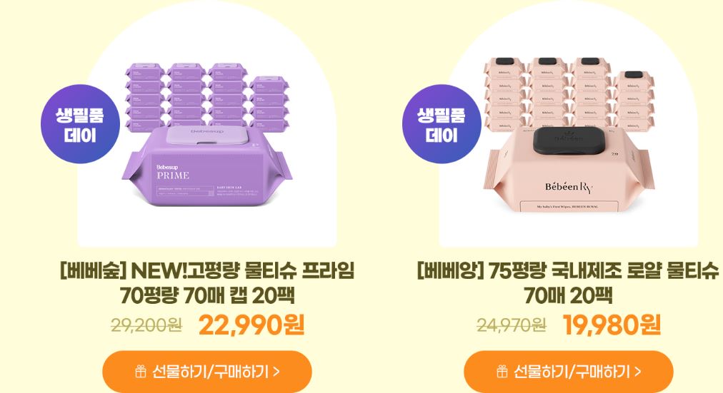 할인 품목 : 샴푸, 물티슈 등