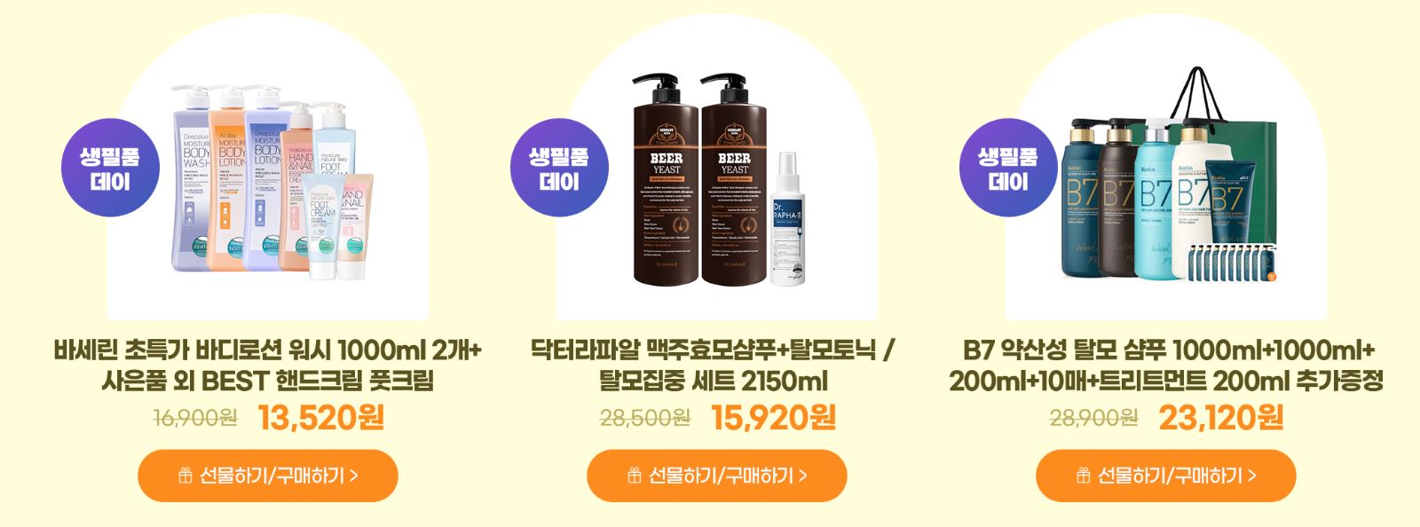 할인 품목 : 샴푸, 물티슈 등