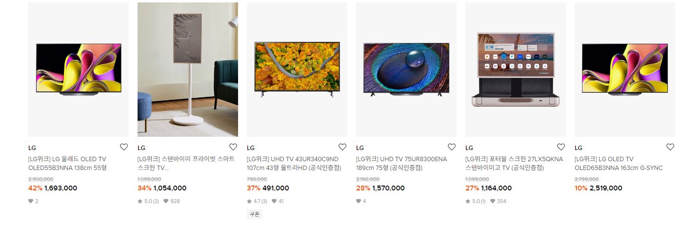 LG 다양한 제품을 할인 판매하네요.