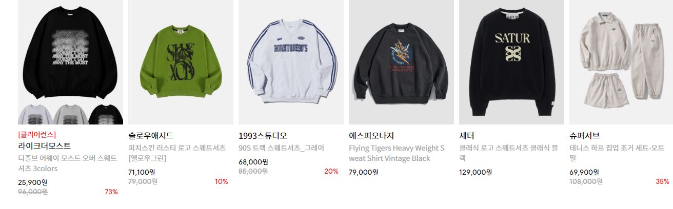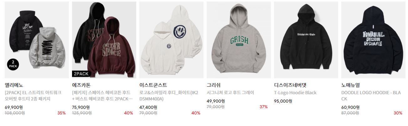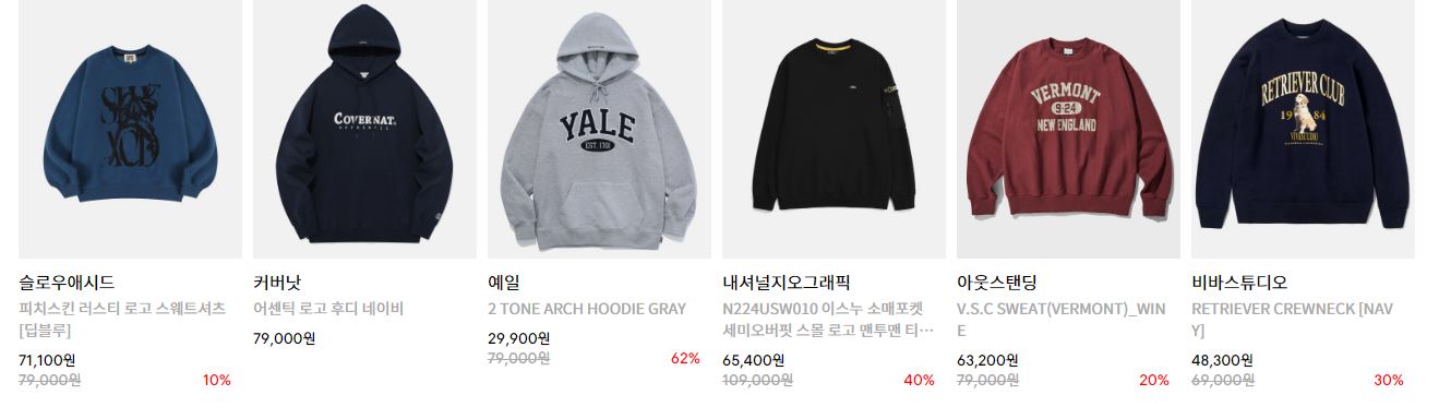 할인 품목 : 니트, 후드 등