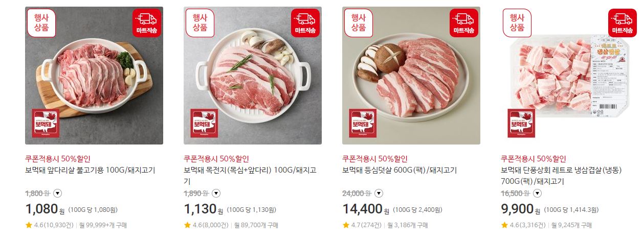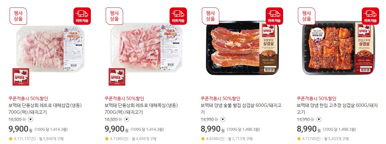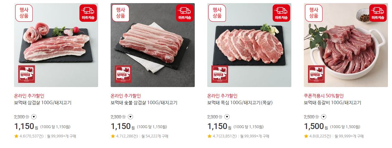 할인 품목 : 삼겹살, 목심 등