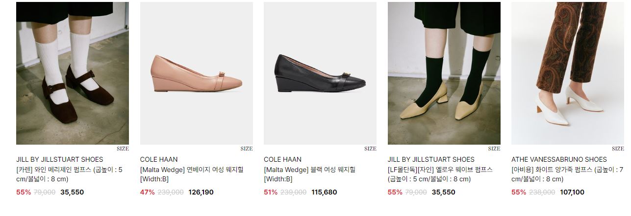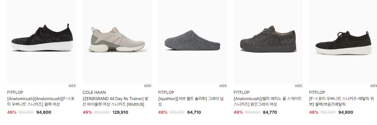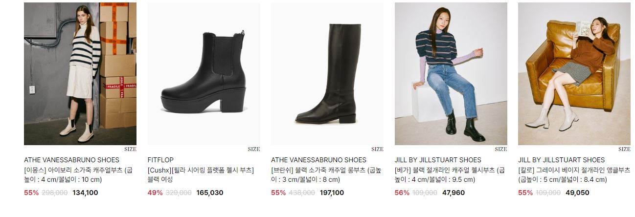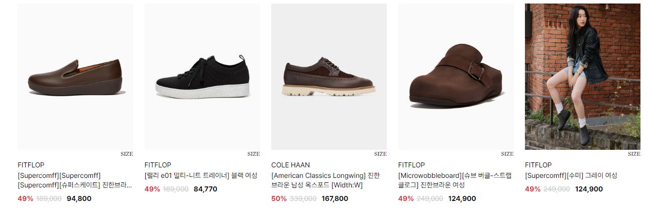 할인 품목 : 운동화, 부츠, 로퍼 등
