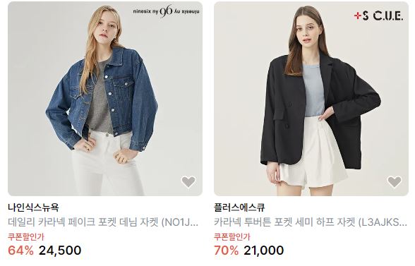 할인 품목 : 자켓, 티셔츠 등