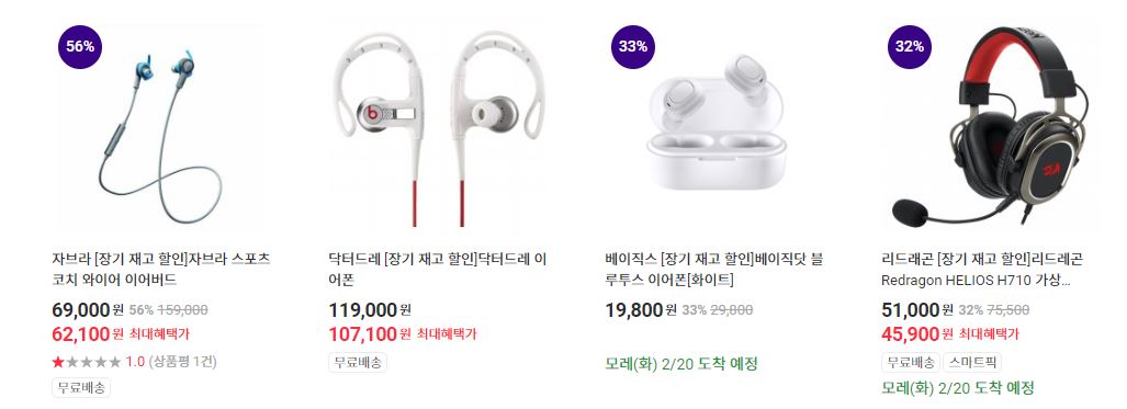 할인 품목 : 헤드폰, 이어폰, 스피커 등