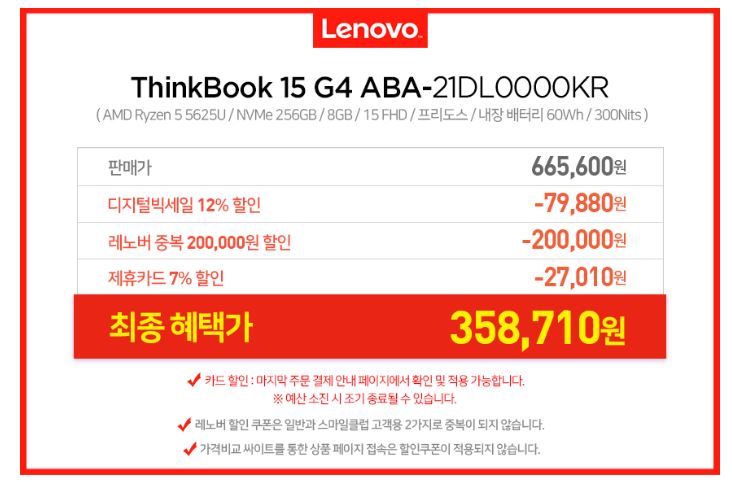 ThinkBook 15 G4 ABA-21DL0000KR 할인 정보 포스팅입니다.