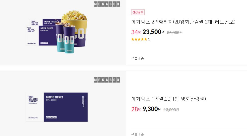 메가박스 다양한 제품을 할인 판매하네요.