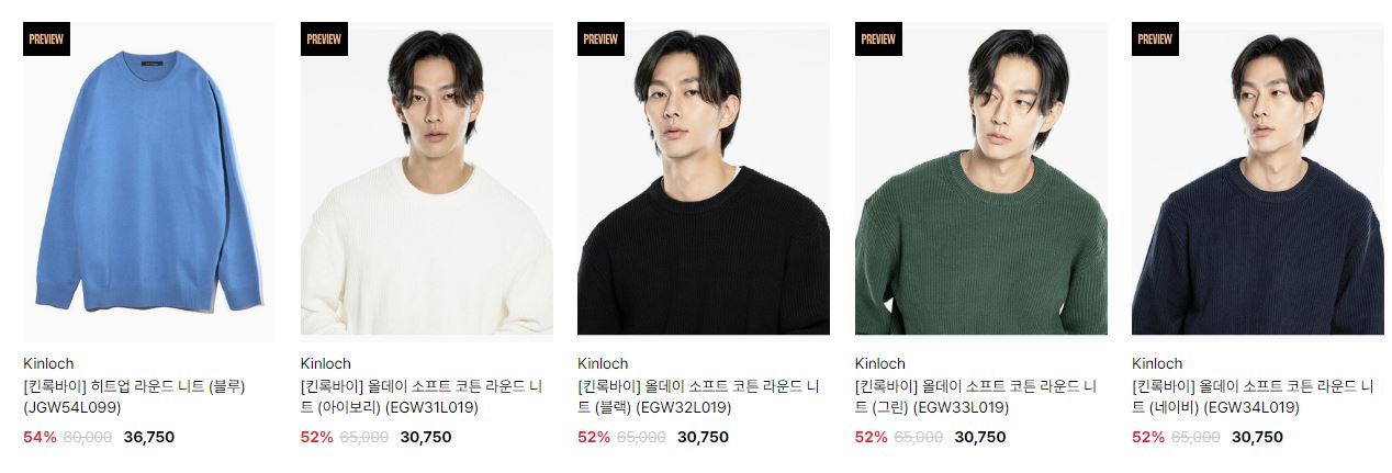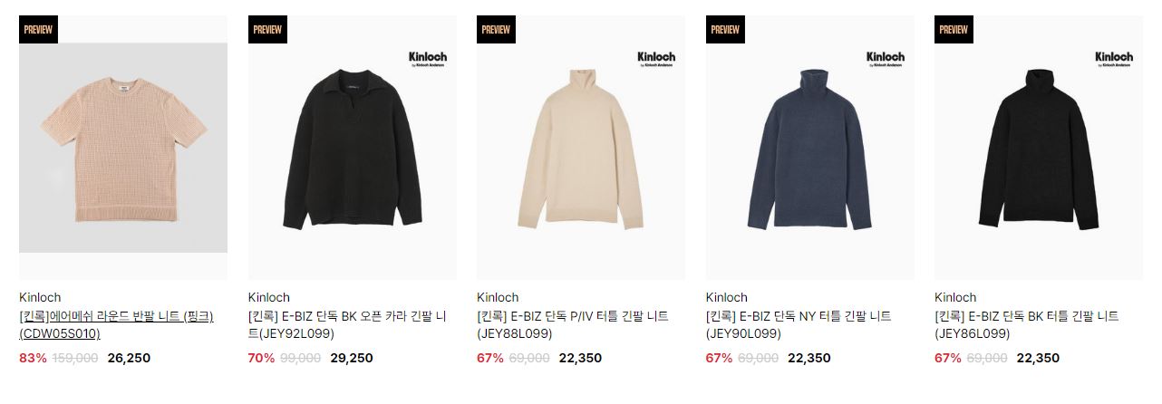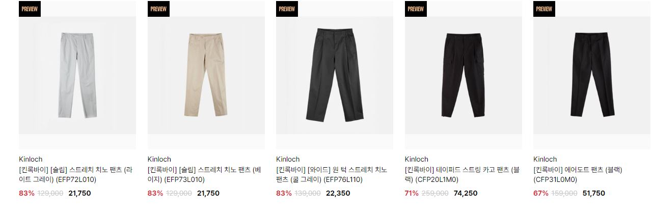 할인 품목 : 자켓, 팬츠, 니트 등