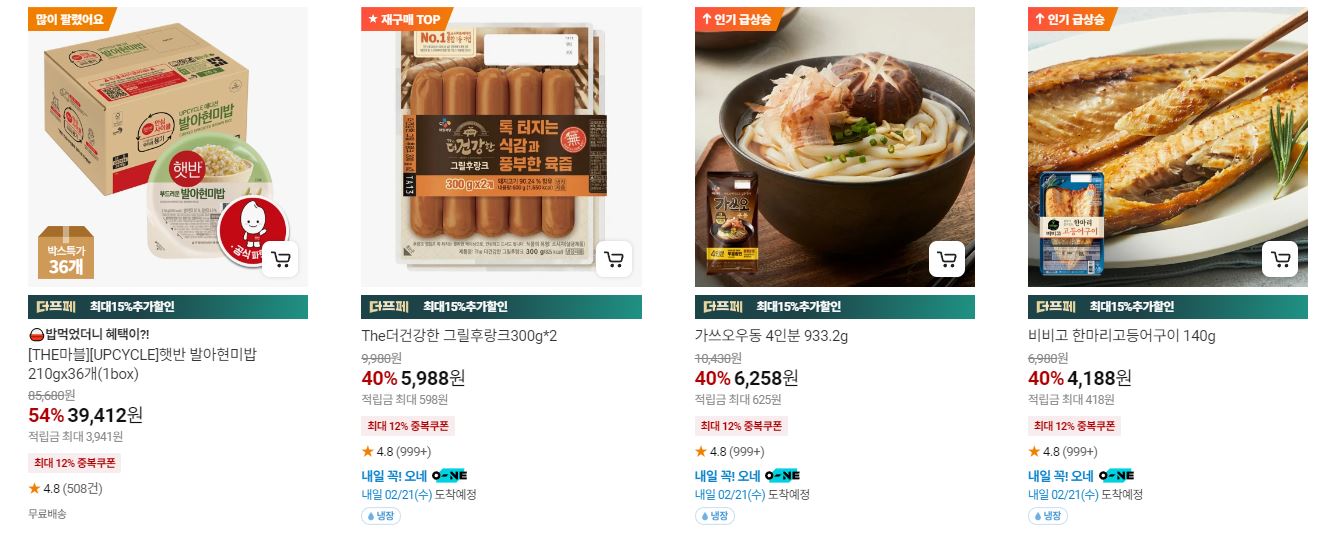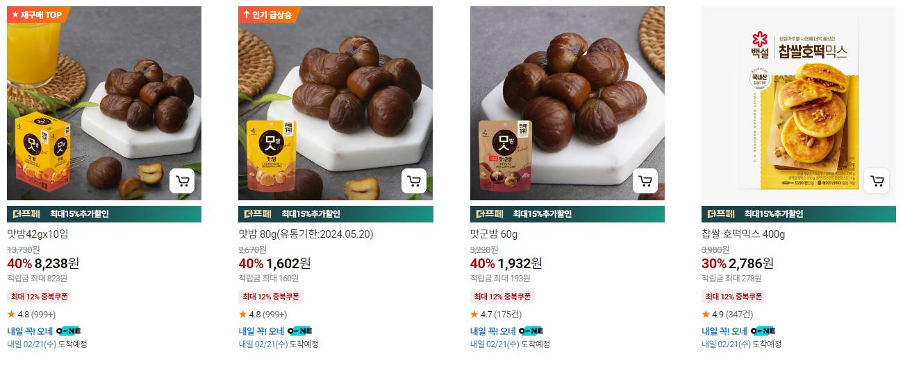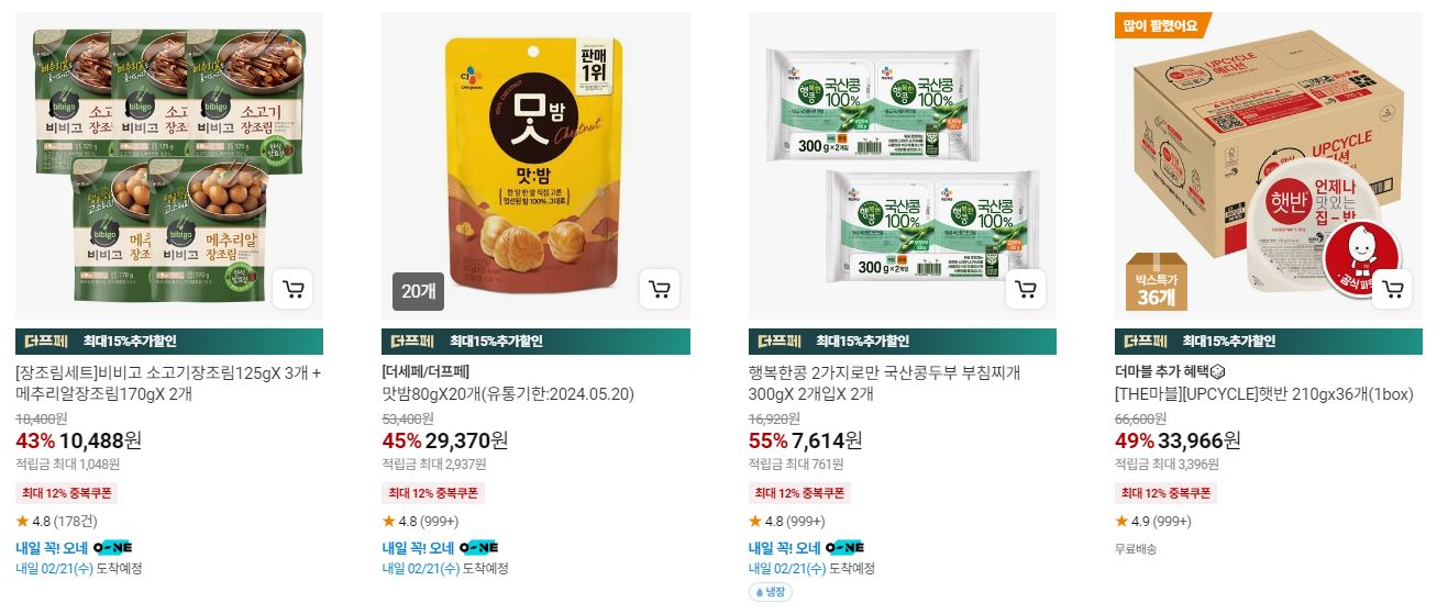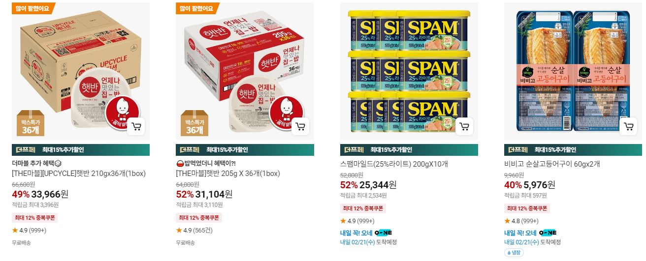할인 품목 : 햇반, 스팸, 맛밤 등