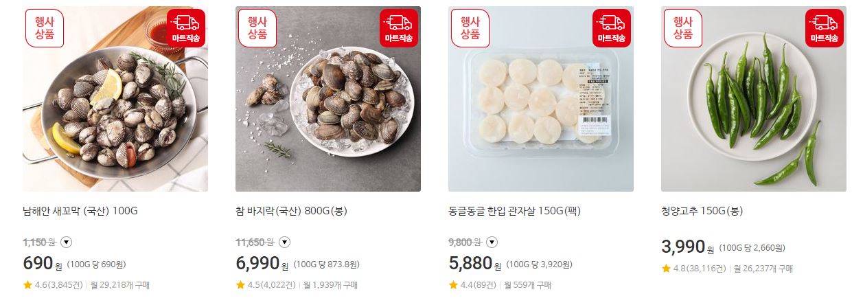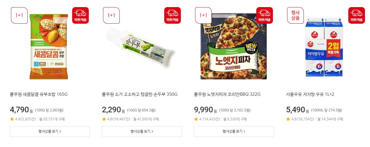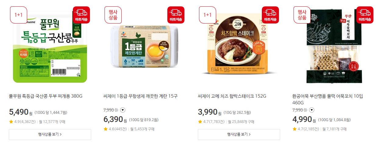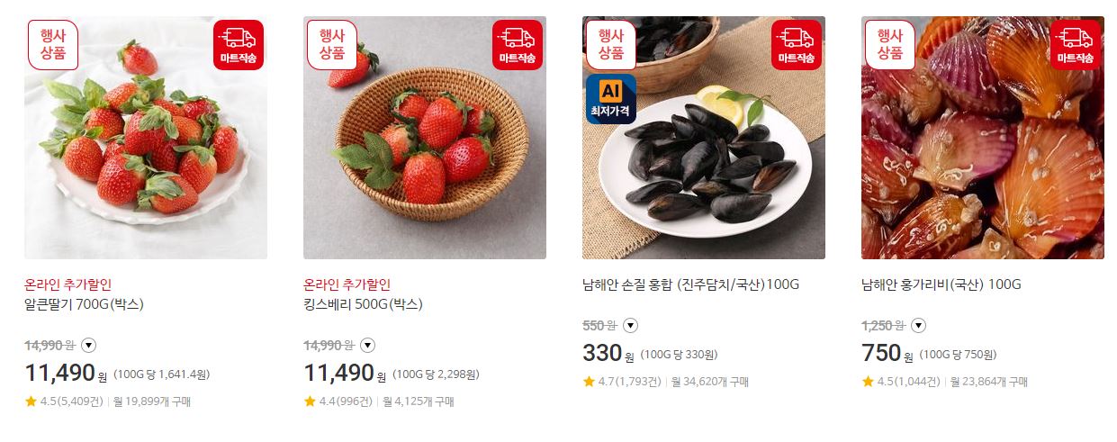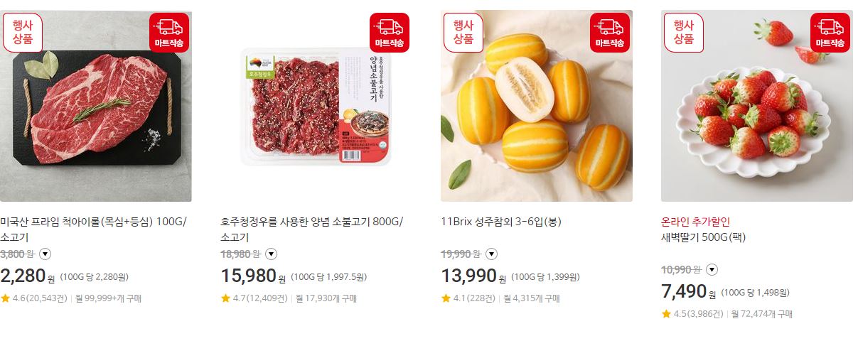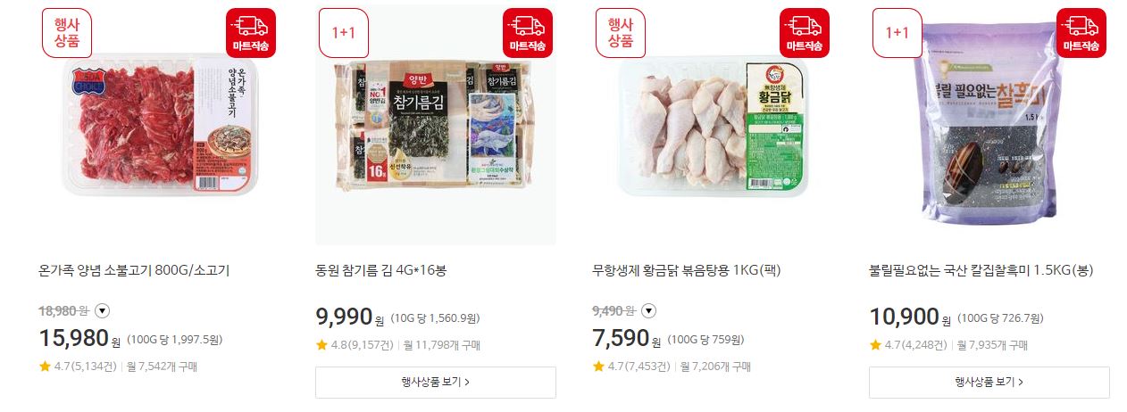 할인 품목 : 가공식품, 과일 등