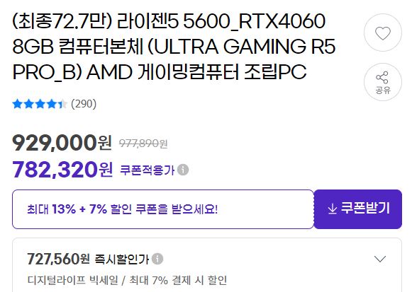 프리플로우 라이젠5 5600 RTX4060 8GB 컴퓨터본체 할인 정보 [링크]