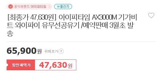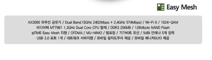 아이피타임 AX3000M 와이파이 유무선공유기 할인 정보 [링크]