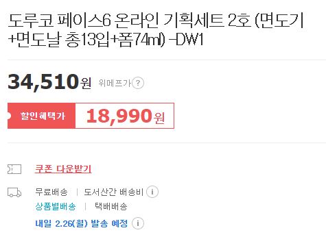 도루코 페이스6 온라인 기획세트 2호 할인 정보 [링크]