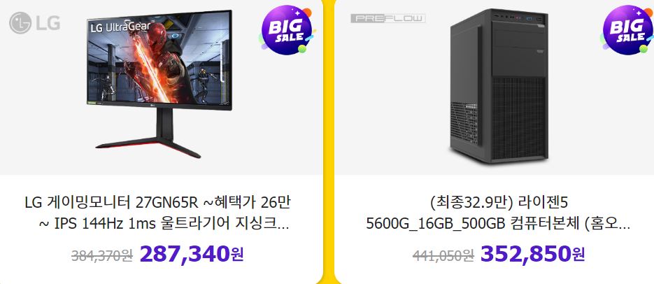 할인 품목 : 모니터, 컴퓨터본체 등
