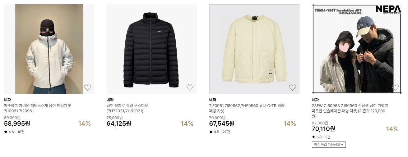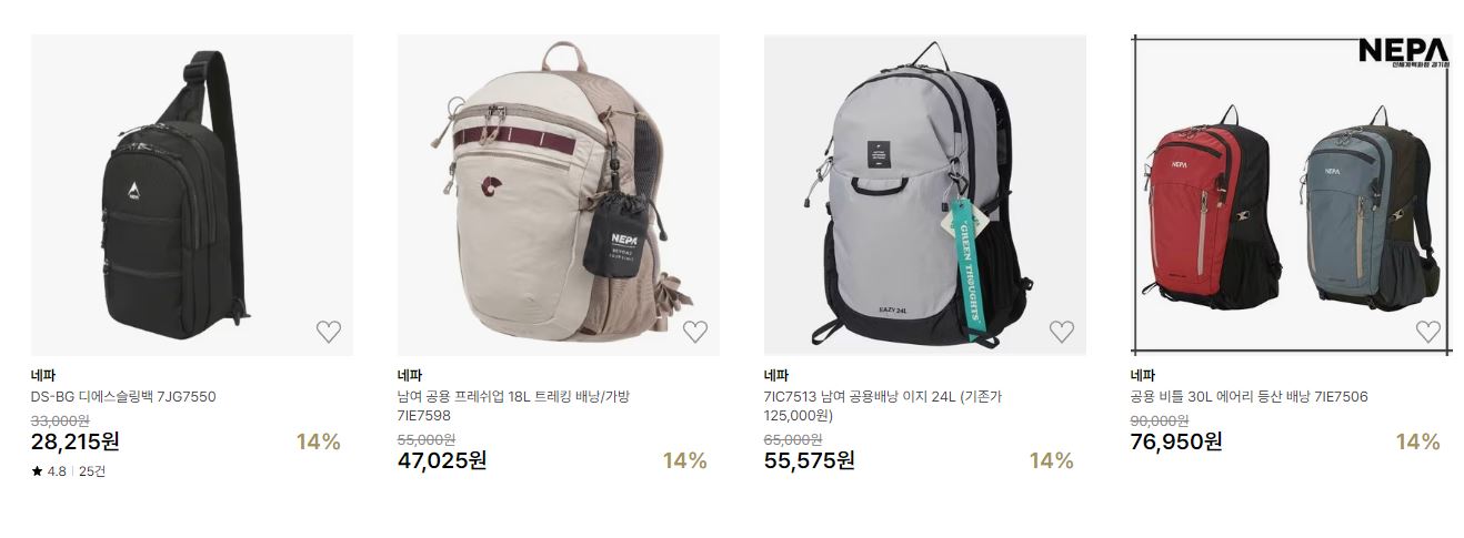 네파 다양한 제품을 할인 판매하네요.