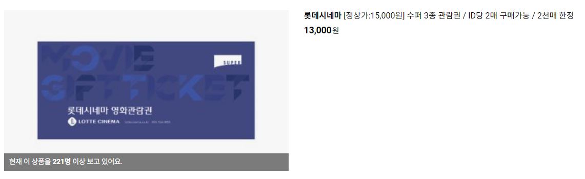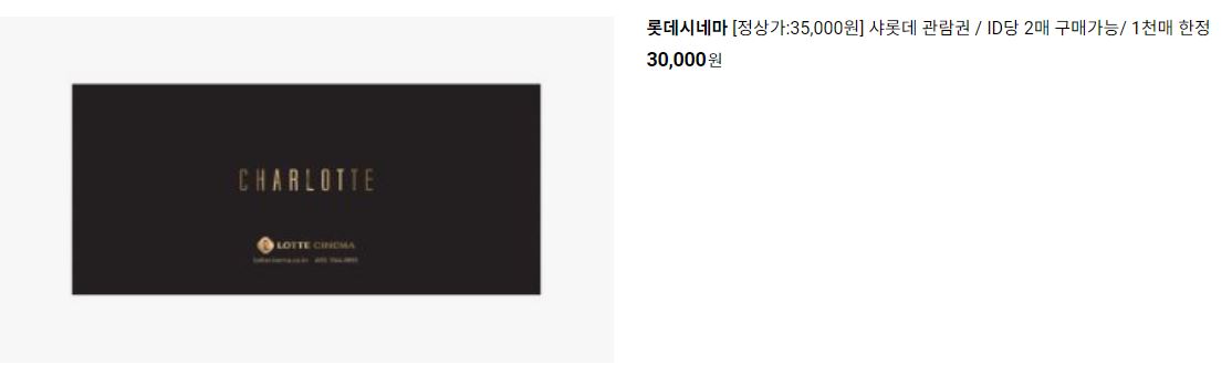 롯데시네마 다양한 제품을 할인 판매하네요.