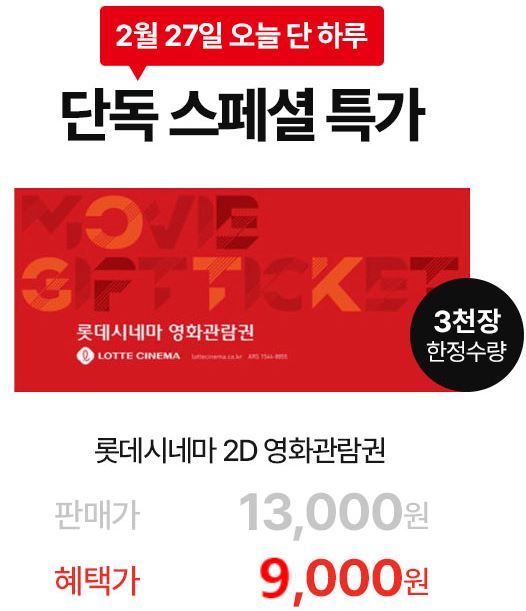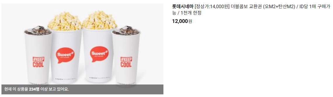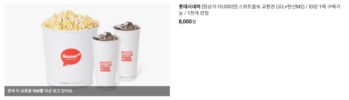 할인 품목 : 2D영화관람권, 스위트콤보 등