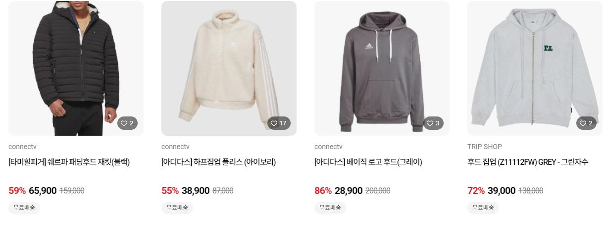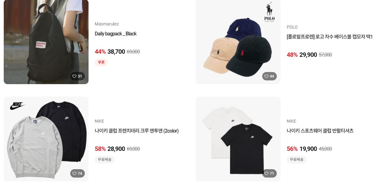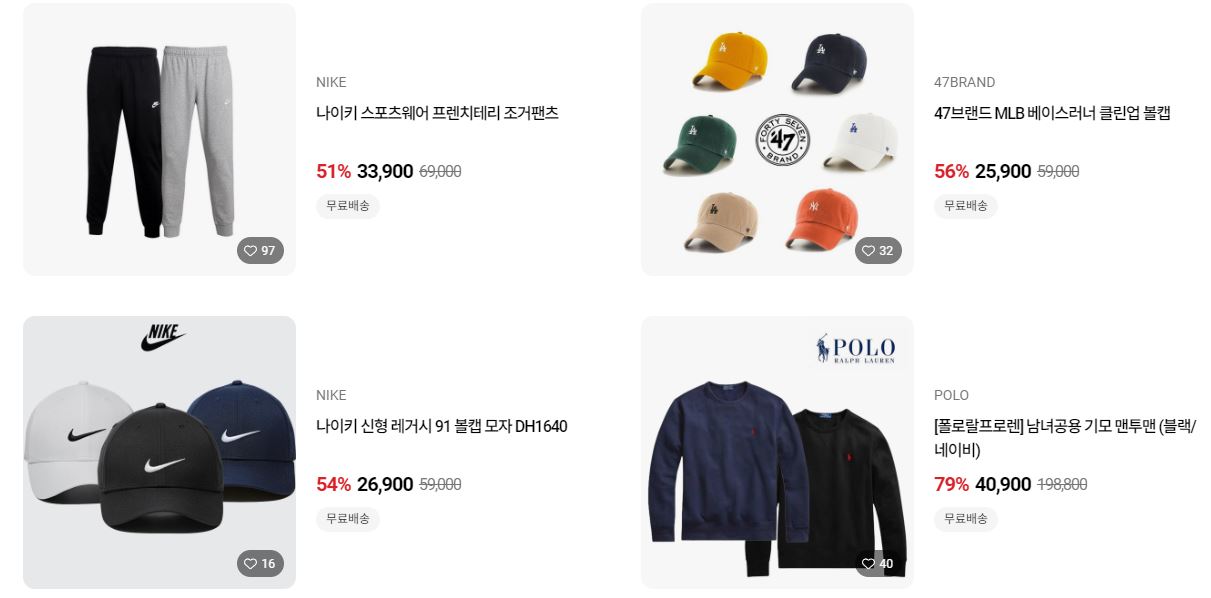 할인 품목 : 의류, 가방, 모자 등