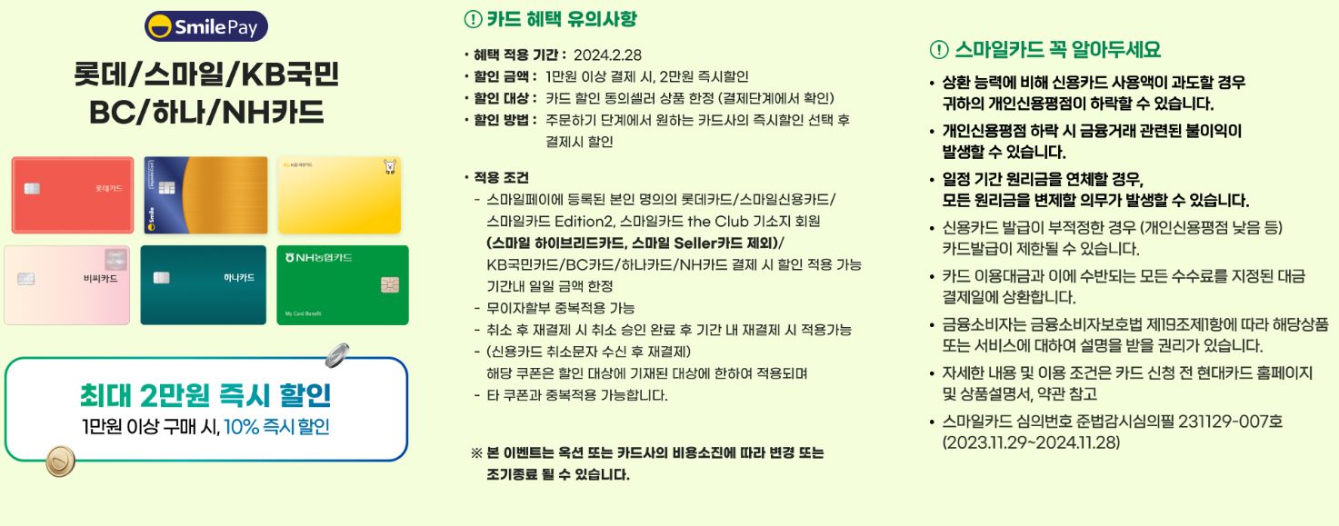 1민원 이상 구매시 20% 할인 쿠폰 + 10% 카드 할인