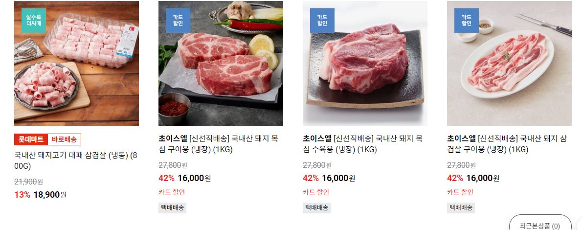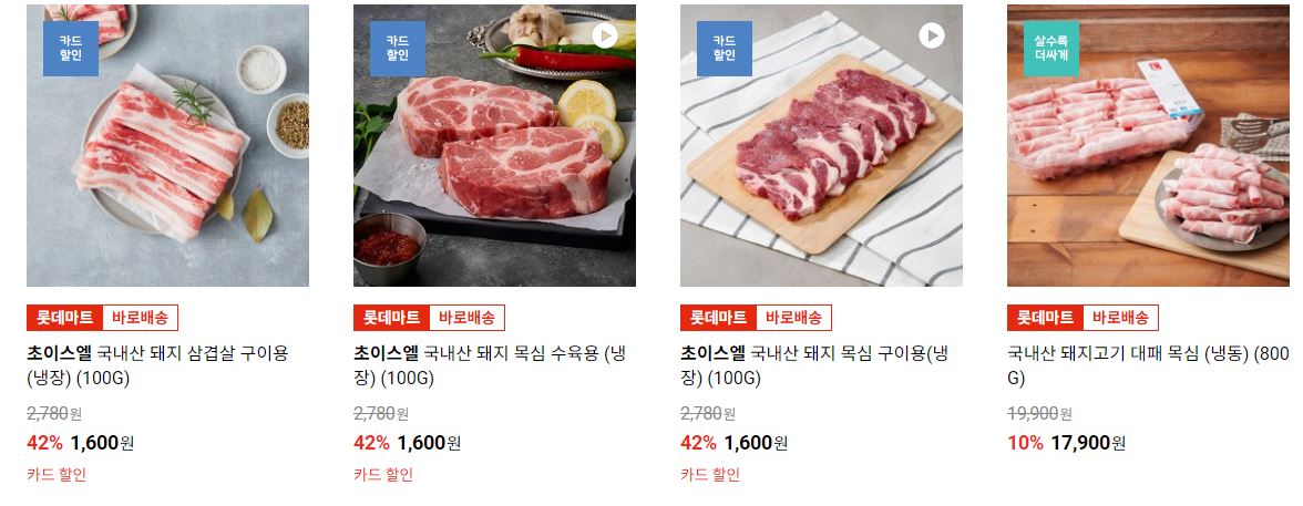 할인 품목 : 삼겹살, 목심 등