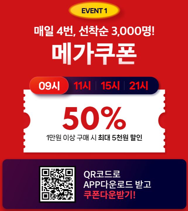 매일 4번 메가쿠폰 선착순 증정 (앱전용)
