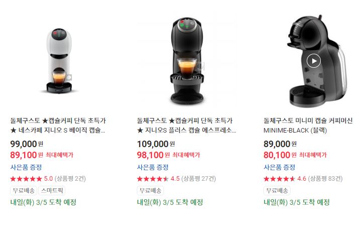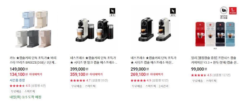 캡슐커피머신 다양한 제품을 할인 판매하네요.