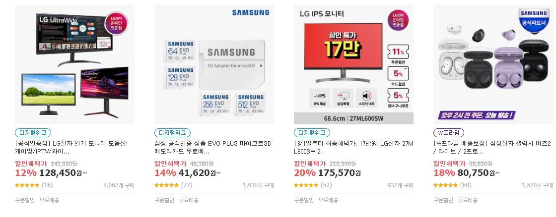 할인 품목 : 모니터, 노트북, 휴대폰 등