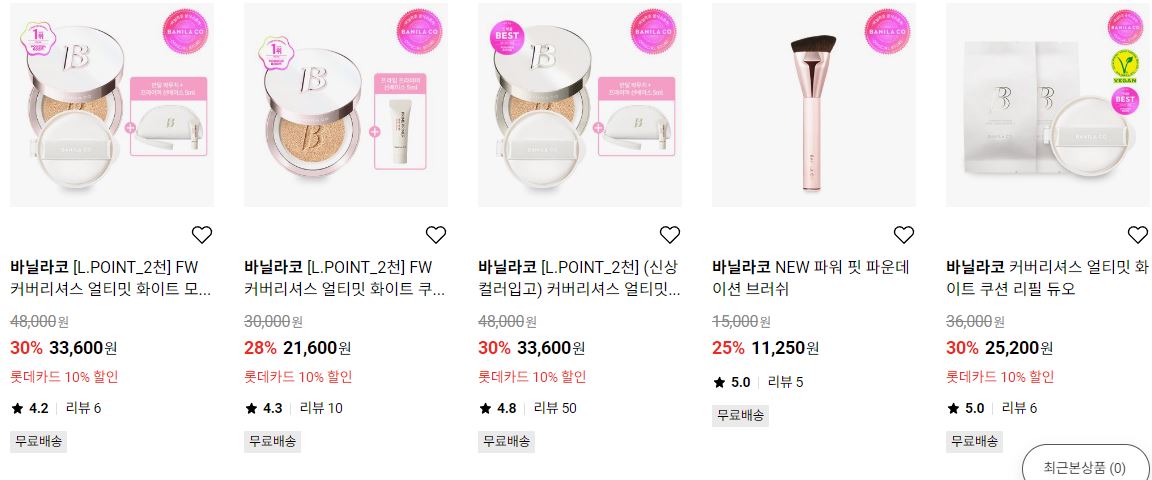 할인 품목 : 쿠션, 마스카라, 프라이머 등