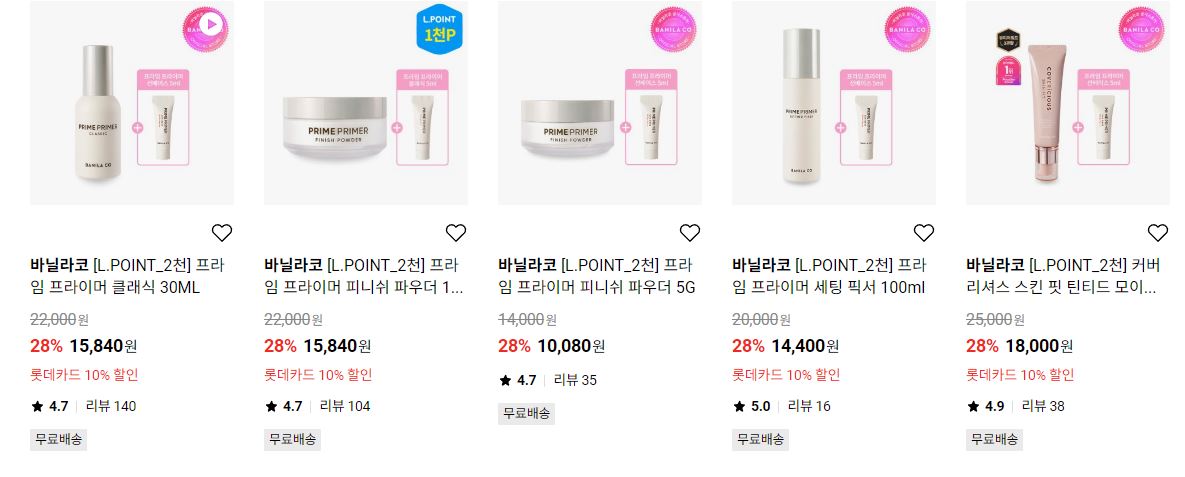 할인 품목 : 쿠션, 마스카라, 프라이머 등