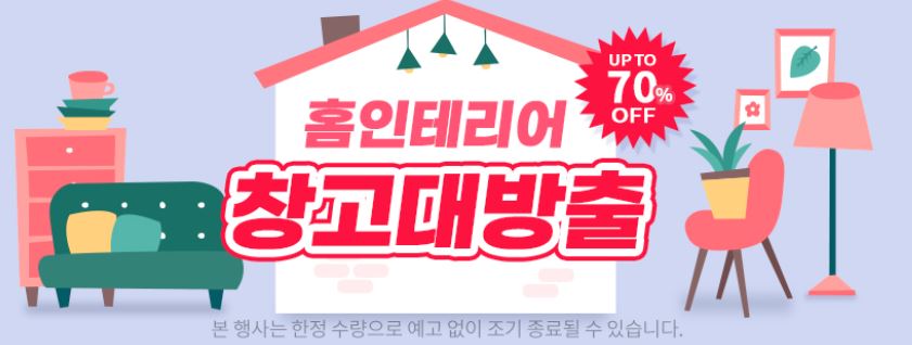 쿠팡 홈인테리어 창고대방출 최대 70% 세일 정보 포스팅입니다.