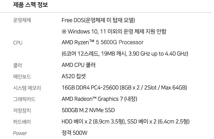 구성 : 라이젠 5600G, DDR4 16기가 램, SSD 500GB 등