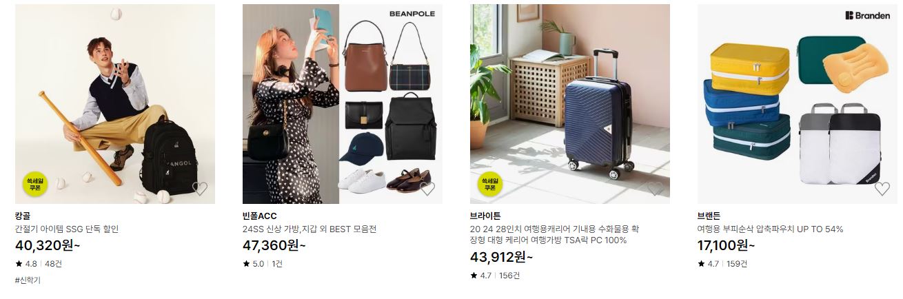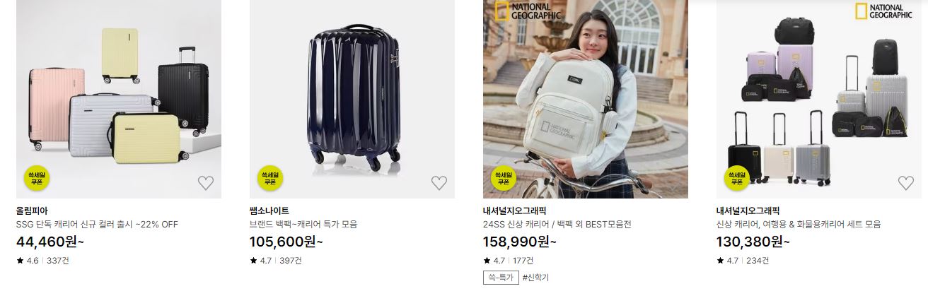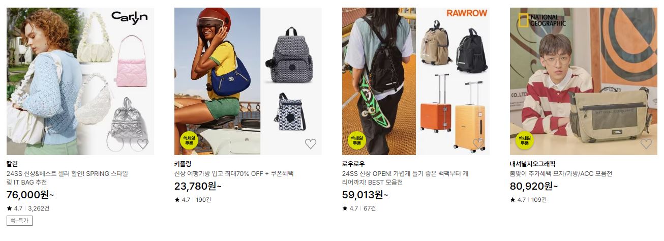 할인 품목 : 백팩, 캐리어, 토드백 등