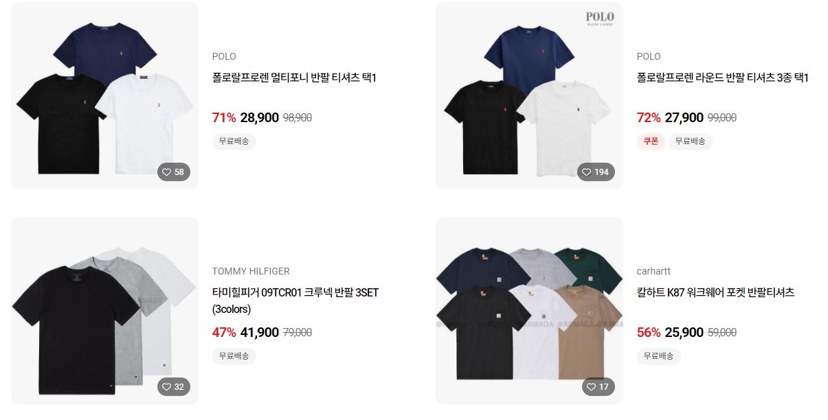 할인 품목 : 티셔츠, 모자 등
