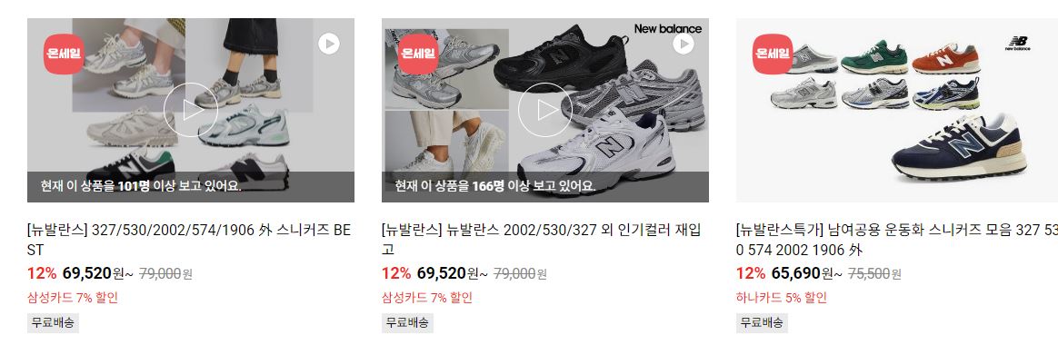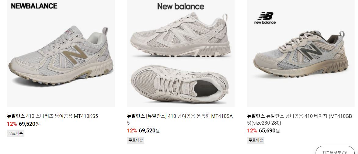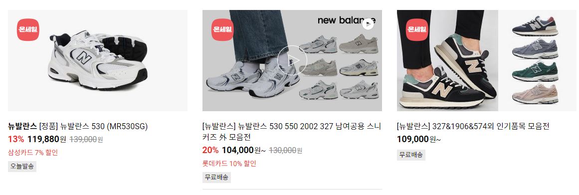 뉴발란스 다양한 제품을 할인 판매하네요.