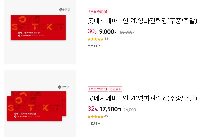할인 브랜드 : 굽네치킨, 롯데시네마 등