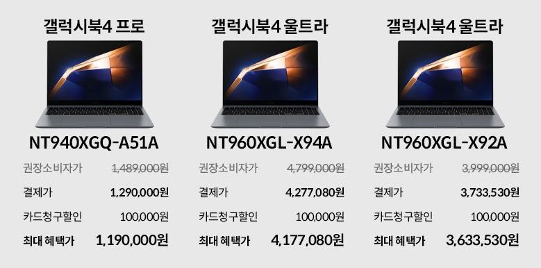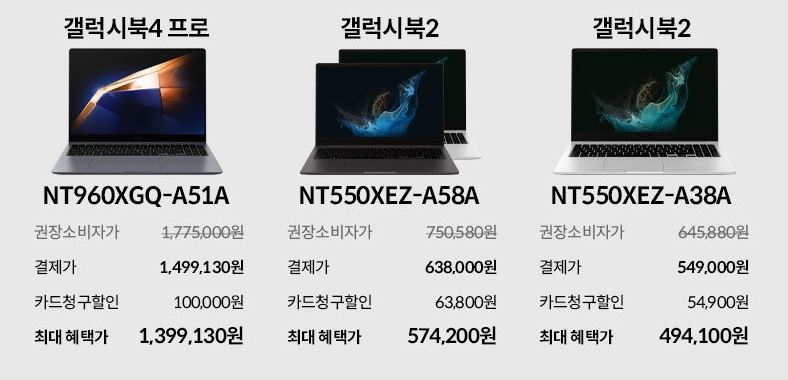 할인 품목 : 갤럭시북4 프로, 갤럭시북2 등