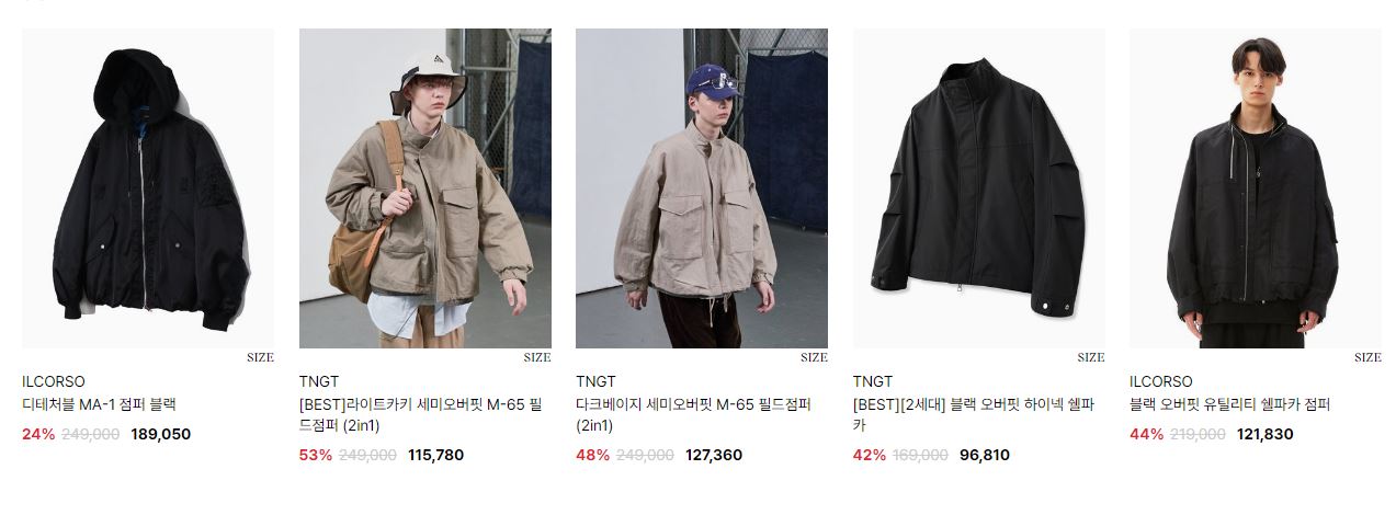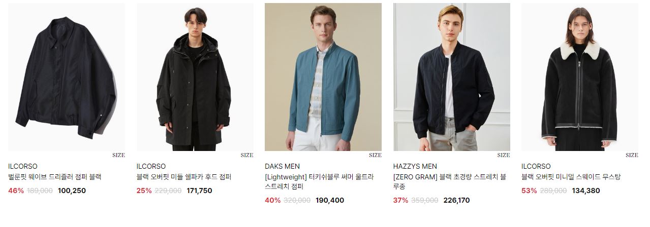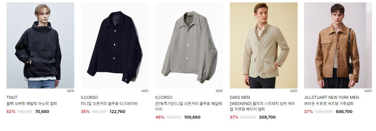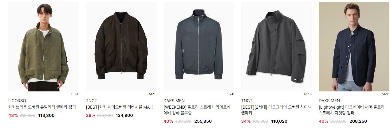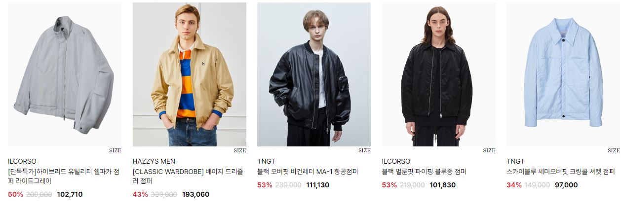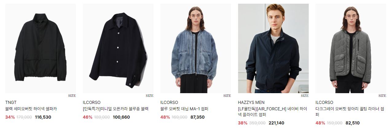 할인 품목 : 자켓, 점퍼 등