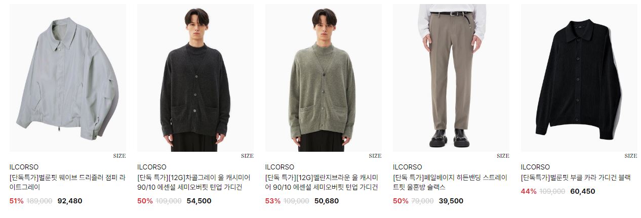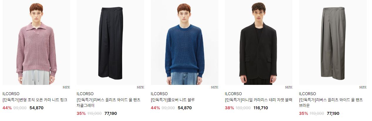 일꼬르소 다양한 제품을 할인 판매하네요.
