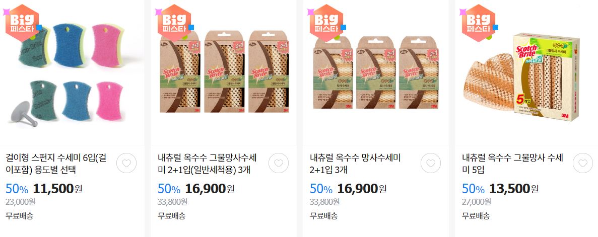 할인 품목 : 수세미, 고무장갑 등