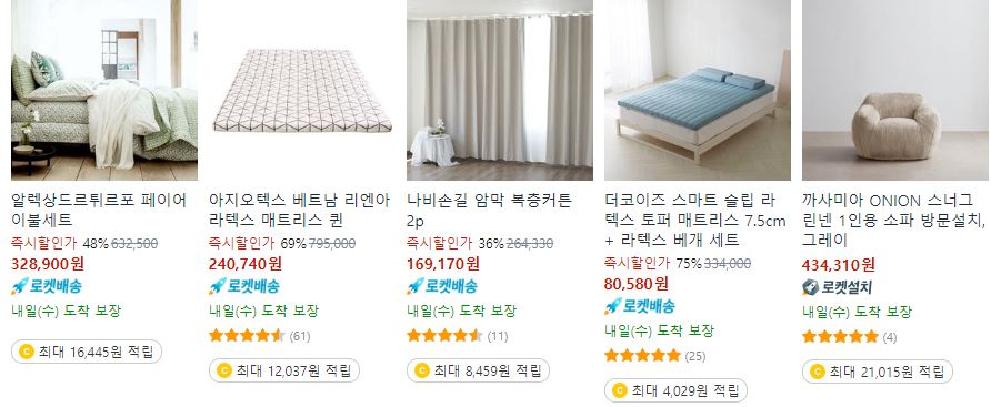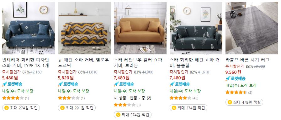 할인 품목 : 소파, 이불, 의자 등