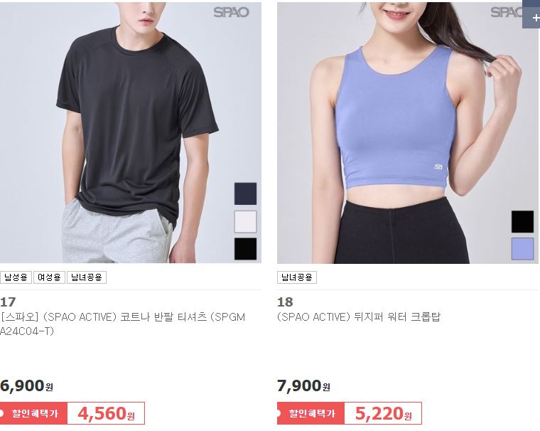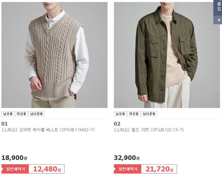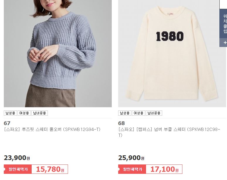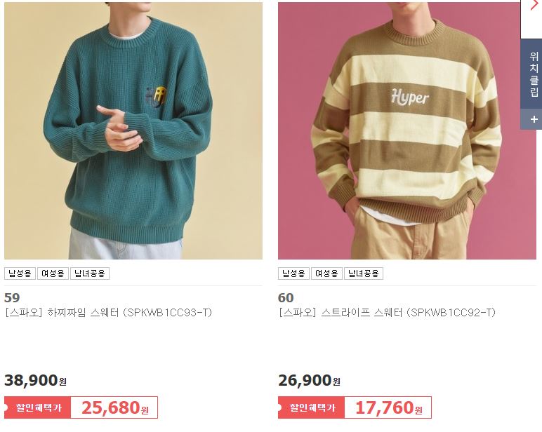 스파오 다양한 제품을 할인 판매하네요.