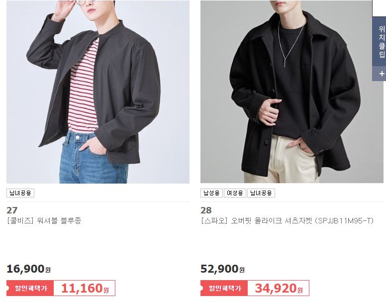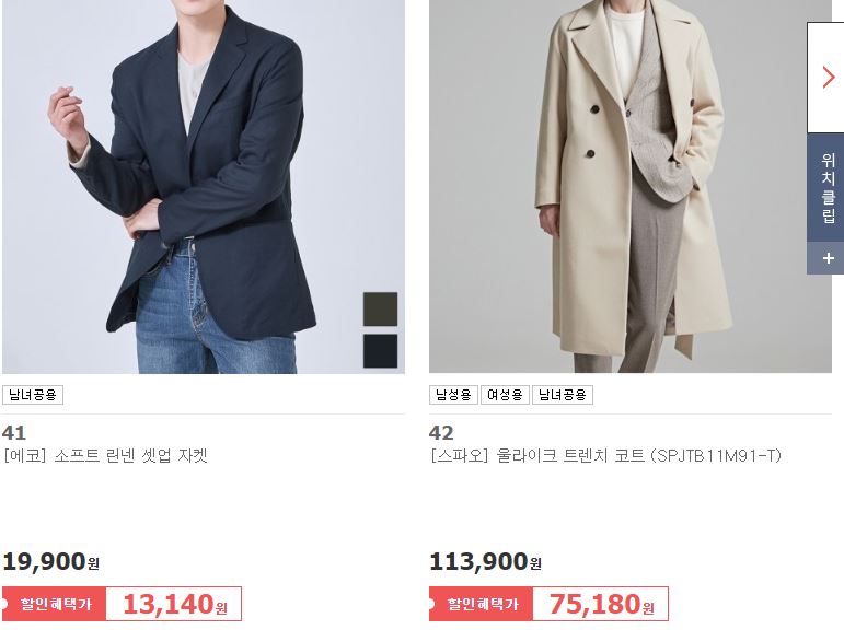 할인 품목 : 자켓, 니트 등