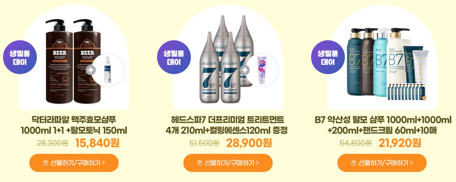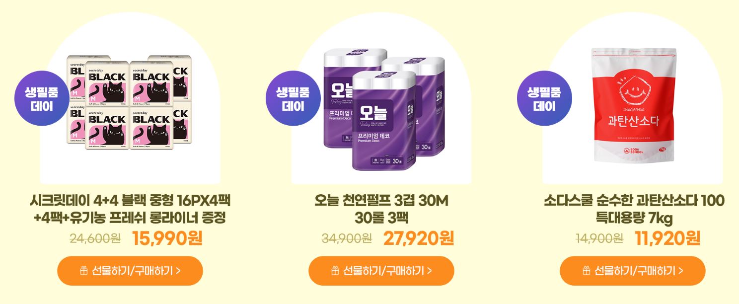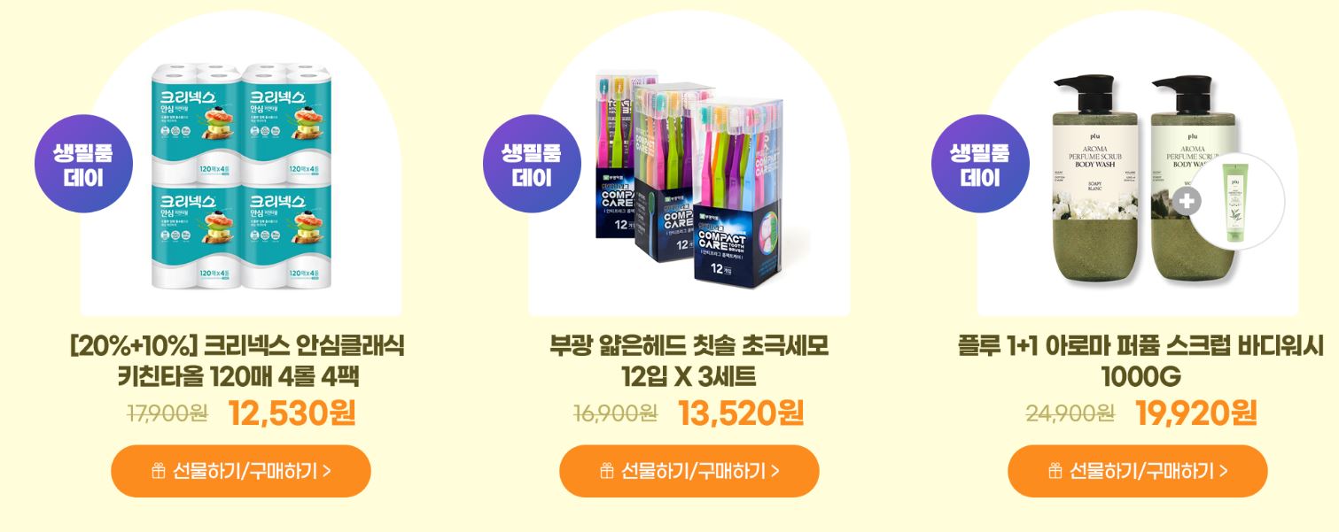 할인 품목 : 휴지, 샴푸 등