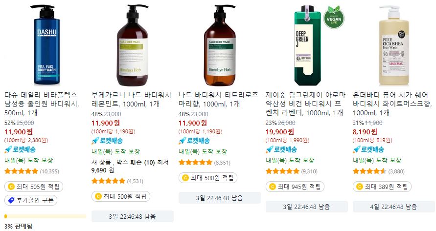 할인 품목 : 샴푸, 바디워시 등