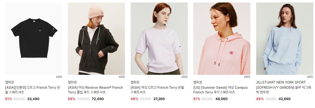 할인 품목 : 맨투맨, 후드티, 팬츠 등