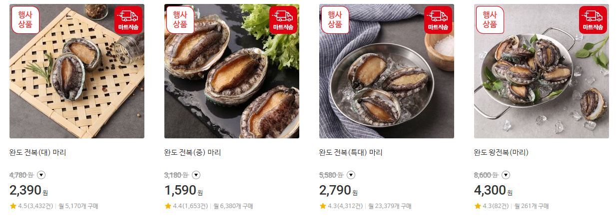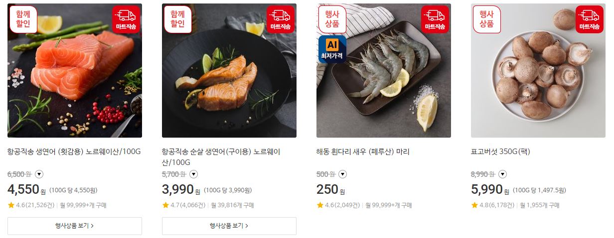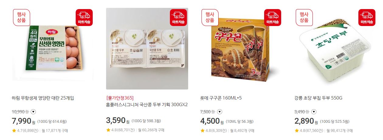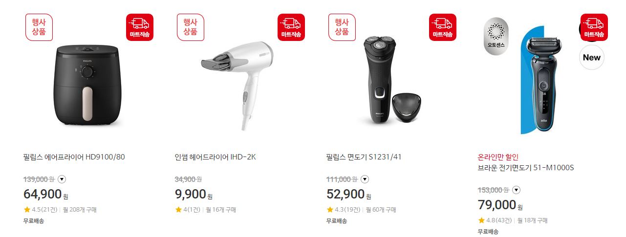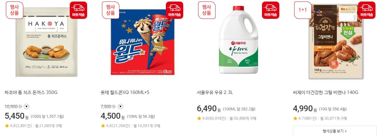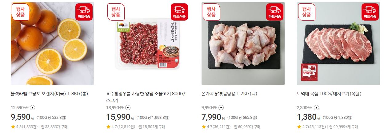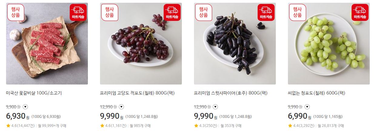 할인 품목 : 신선식품, 가공식품, 가전 등