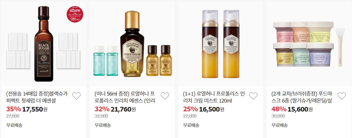 스킨푸드 다양한 제품을 할인 판매하네요.
